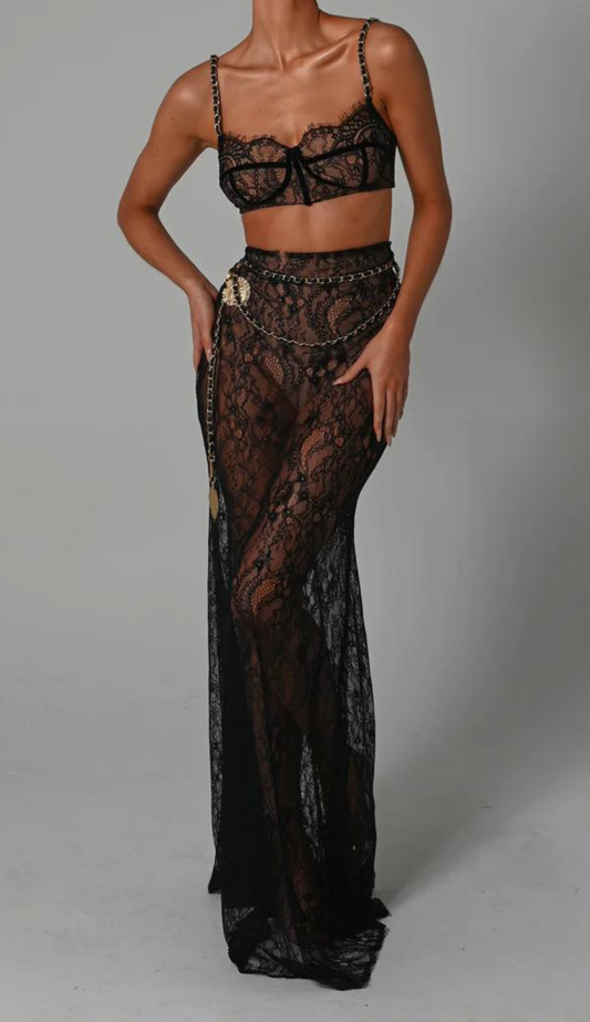 AgotadoElida Black Lace Skirt Set