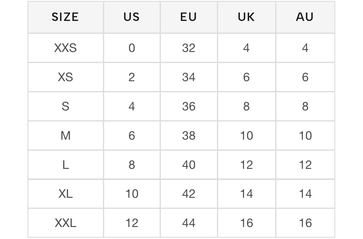 Our current size range include sizes XXS-XXL and currently adding XXXL as well. We have a size chart guide for each item on the product pages and images of all our models wearing different sizes in the collection. Every model is wearing its regular size. Most pieces can be worn in smaller or bigger sizes depending on how you want them to fit but if you have any questions about sizing just email us so we can help ASAP! If there are pieces we recommend sizing up, you will find that information in the product description.