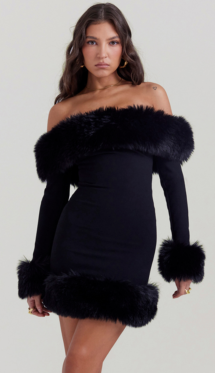 Cesca is feminine, bold and anything but ordinary. Adorned with timeless faux fur all around the piece, featuring a bodycon silhouette, long sleeves, mini length, invisible back zip for extra comfort.