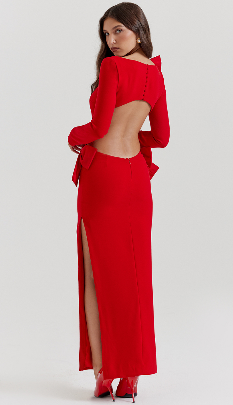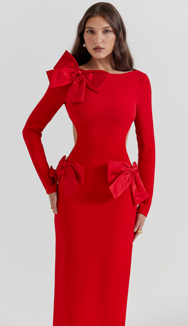 Claudette Bow Red Maxi Dress