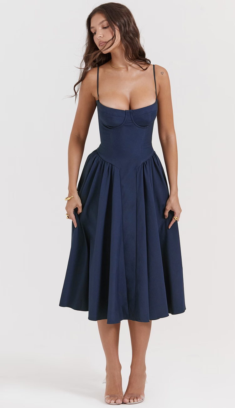 The perfect dress for all-year-long occasions. Boned through the bodice to enhance the silhouette, heart shaped neckline with underwire cups for extra support, thin adjustable straps and gathering for volume.